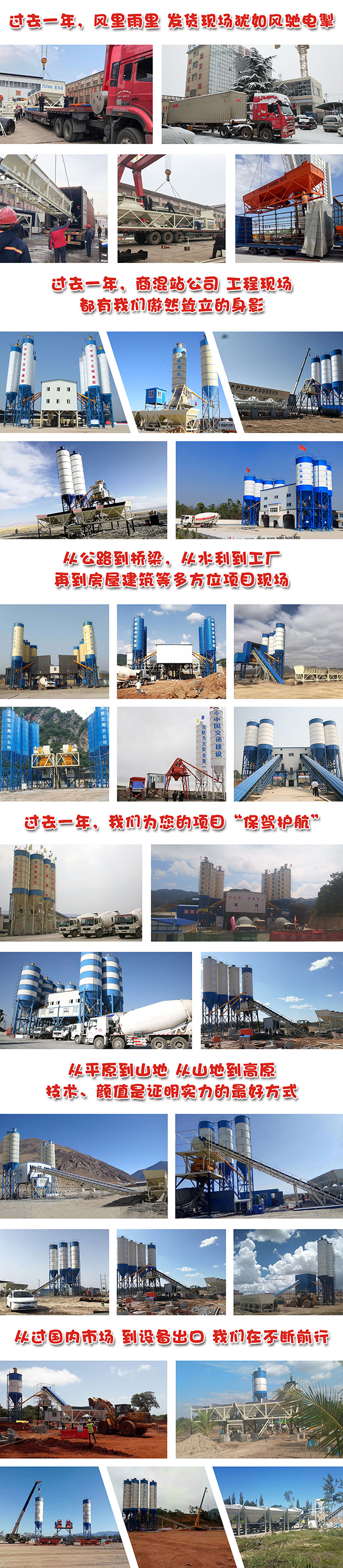 公司拥有十二条专业装备生产线,目前主要产品有混凝土搅拌站、JS混凝土搅拌机、混凝土配料机、稳定土拌和站、VS制砂楼、移动破碎站、破碎生产线等建筑机械共八大系列100多种型号产品,几乎覆盖各类建筑工程所需各种机械设备。